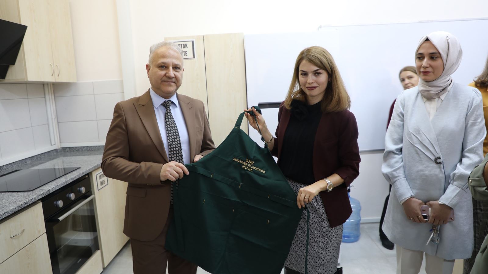 The opening ribbons were cut by SDU Vice Rector Prof. Dr. Mehmet Gençtürk, Dean of the Faculty of Health Sciences Prof. Dr. Ferdi Başkurt, and Head of the Department of Nutrition and Dietetics Assoc. Prof. Dr. Aliye Kuyumcu. The ceremony was attended by Vice Dean of the Faculty of Medicine Prof. Dr. Sabriye Ercan, Head of the Department of Administrative and Financial Affairs Kazım Kahraman, Branch Manager Bekir Türk, Head of the Department of Health, Culture and Sports Gültaze Gül, branch managers, faculty members, and students.