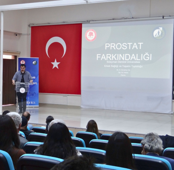 Süleyman Demirel Üniversitesi Erkek Sağlığı ve Yaşamı Topluluğu ile Isparta Aile ve Sosyal Hizmetler İl Müdürlüğü iş birliğinde, erkek yaşlılara yönelik Prostat Farkındalık Semineri gerçekleştirildi. Etkinlikte prostat sağlığına ilişkin temel bilgilendirmelerin yanı sıra, fizyoterapi temelli egzersiz yaklaşımlarına da yer verildi. Seminer kapsamında özellikle pelvik taban kaslarının önemi vurgulanarak, yaşlı bireylerde fonksiyonel kapasitenin korunmasına ve yaşam kalitesinin artırılmasına yönelik egzersiz önerileri katılımcılarla paylaşıldı.
