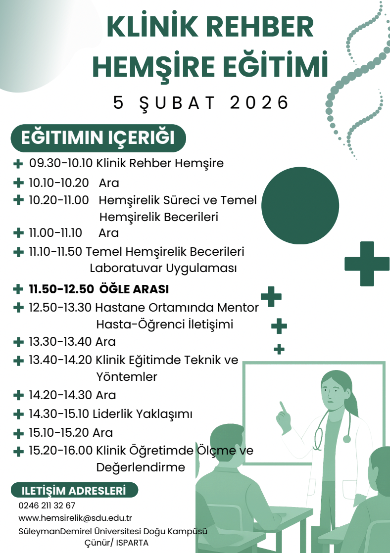 Bölümümüz öğretim elemanları tarafından hazırlanan Klinik Rehber Hemşire Eğitimi, 5 Şubat Perşembe günü gerçekleştirilecektir.